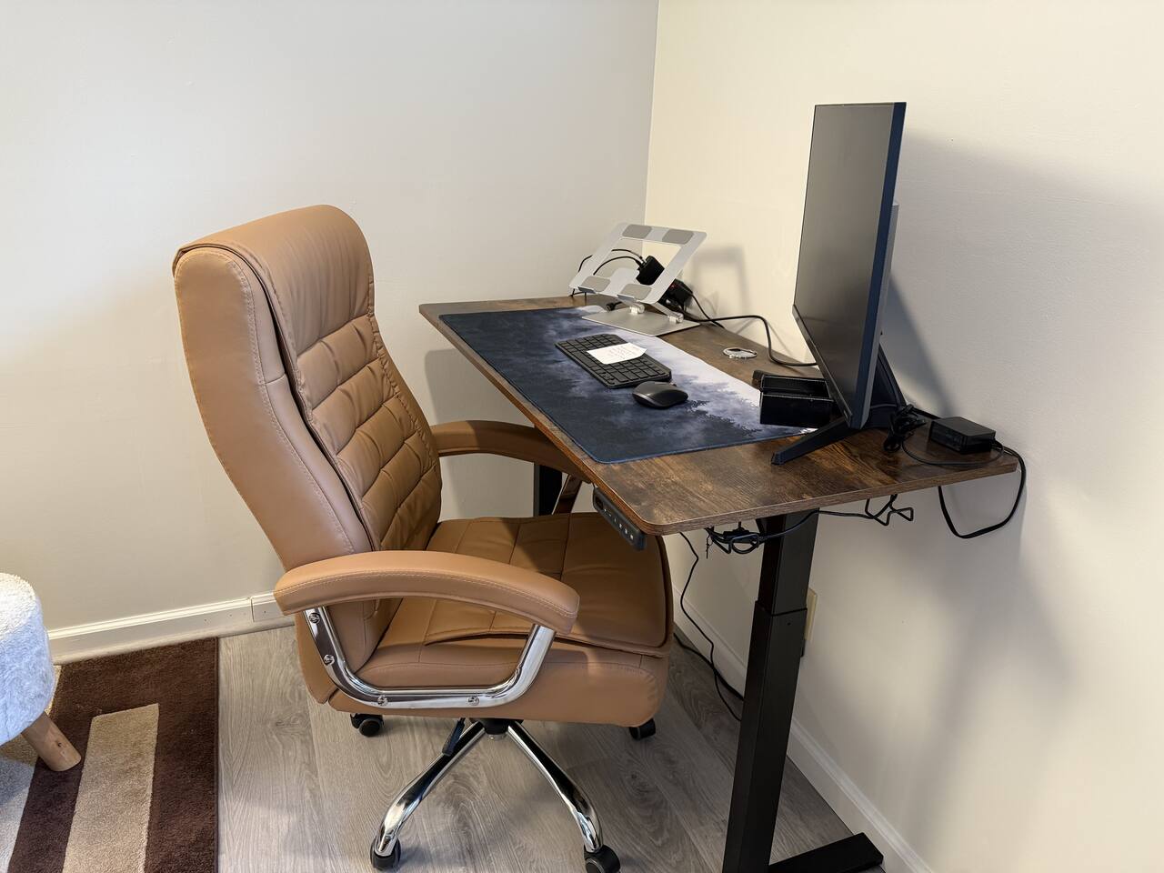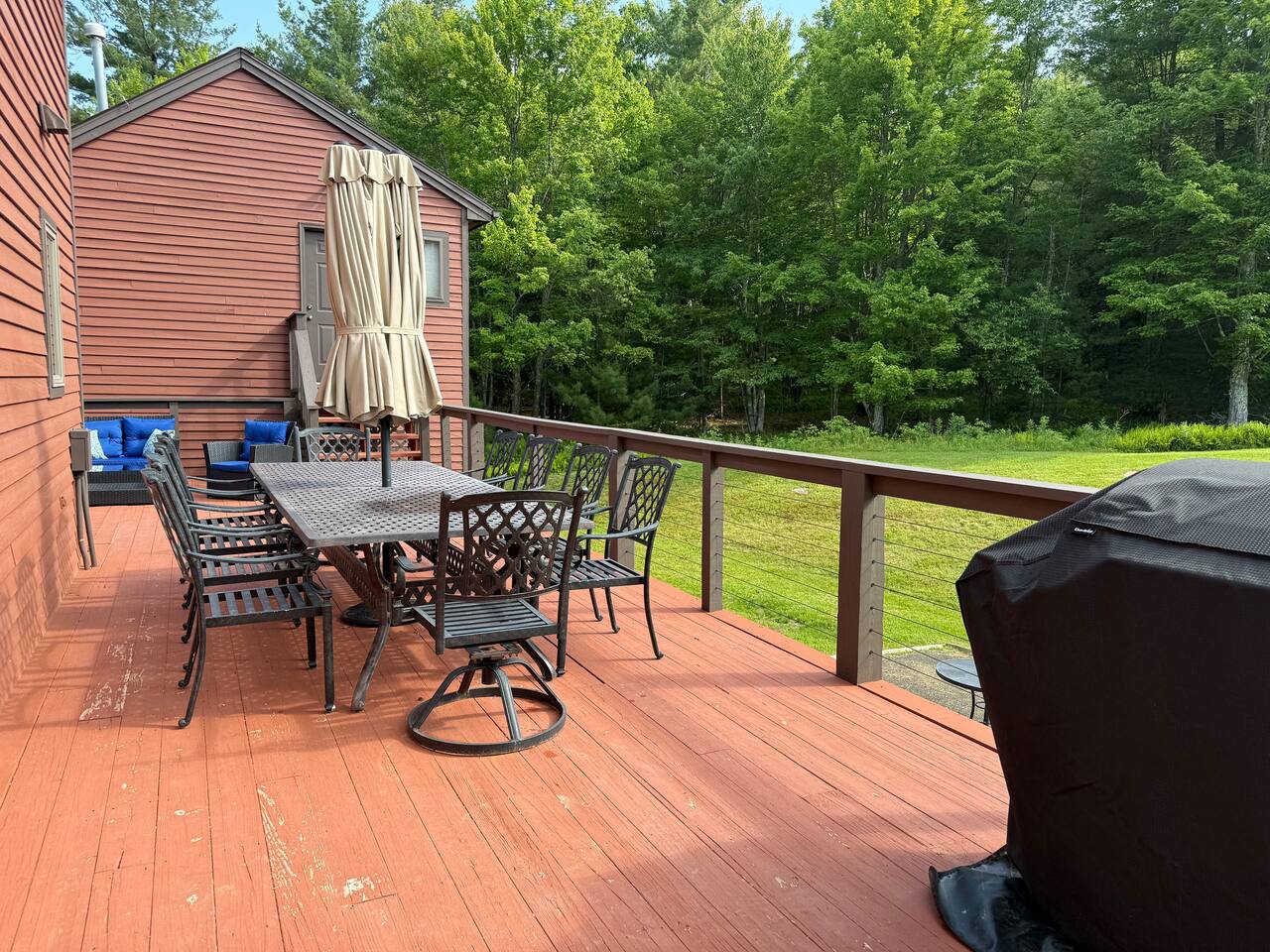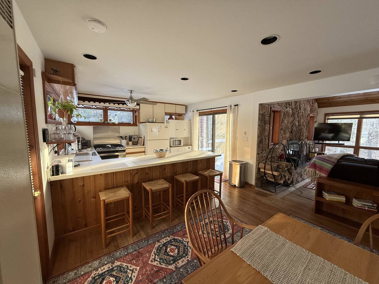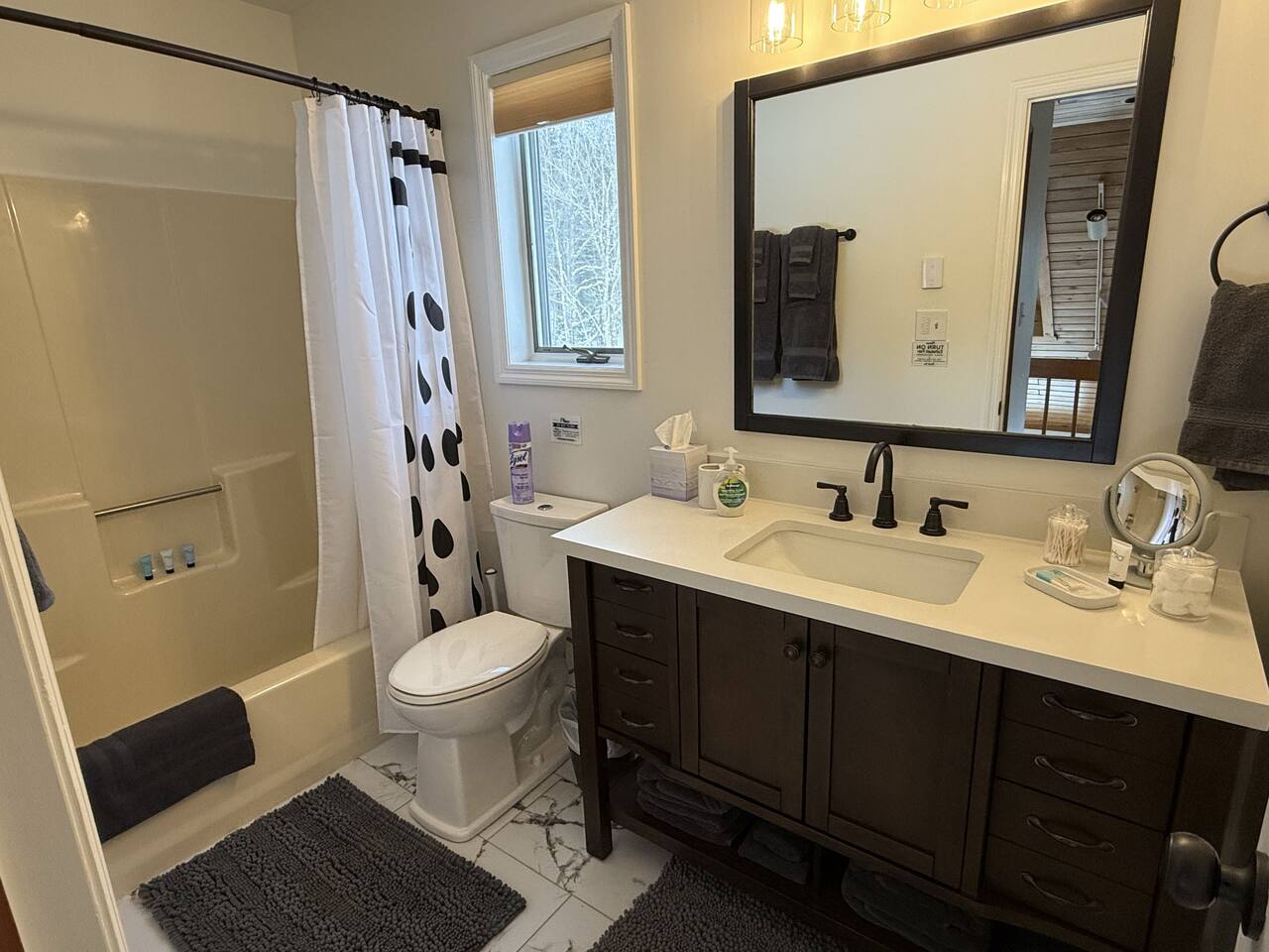 Recently renovated, we kept most of the decorative theme intact for the country home it is. It has some odd features, but we enjoyed it. The main floor is a nice-sized open space with a small full bathroom and an 8-place dining room that looks into the living room and kitchen. The living room seats 6 comfortably, and the Kitchen seats 4 at the counter. Ground Floor includes a common area with a TV, a futon that opens into a queen-sized bed, a work area with a stand-up desk, a secondary monitor, and a laptop stand. I work from home during the week when I'm in. The bedroom has a queen-sized bed and a twin bunk. A full-sized bathroom with a tub that is turned off at the moment. Also, there is a foyer with an entrance that is being renovated. This room had a garage door entrance, so we will be making this a full foyer with storage and a changing bench for the mud room. Stay tuned The second floor includes a Master Bedroom with a king-size bed, nightstands, a double-sized closet, and a private Balcony. For the romantics, it's perfect for morning coffee. The Guest room features a full size bed, dresser, and wardrobe. It's a basic but very clean room. Second floor also includes a shared full-sized bathroom and sauna. Please refrain from using the sauna while we complete an Owner's Closer separate from the upstairs. We will keep our supplies and some personal effects here for now. This is not part of the listing but will be soon.
