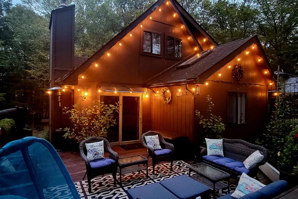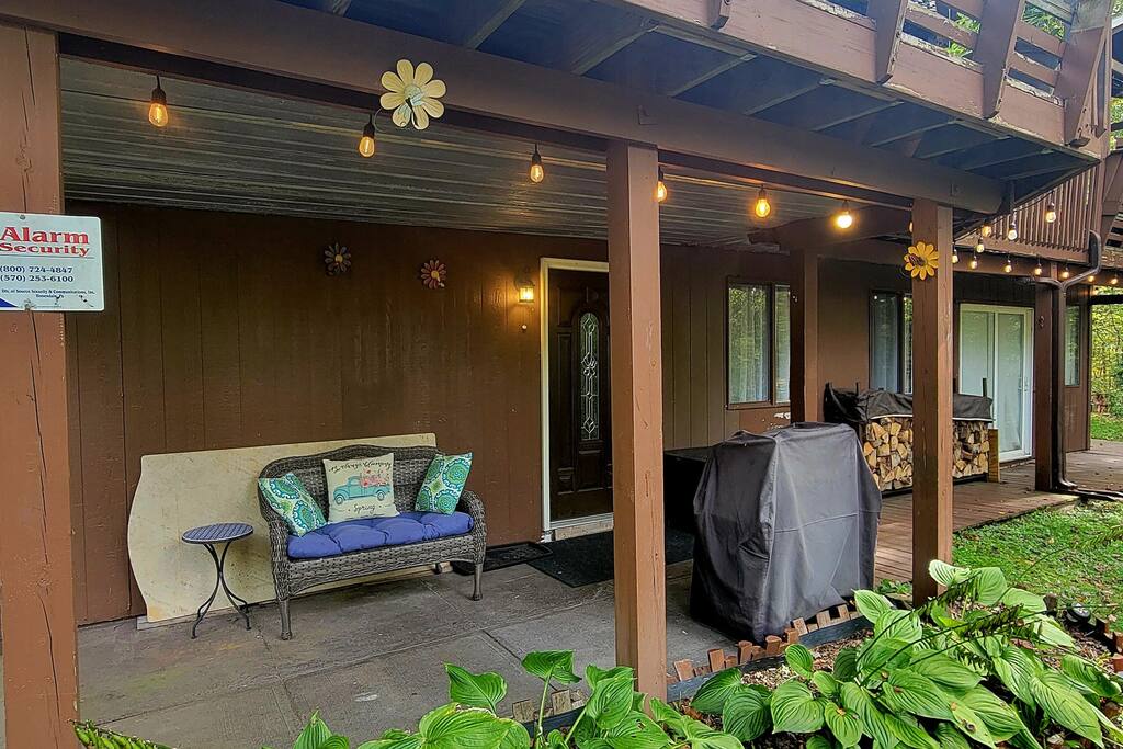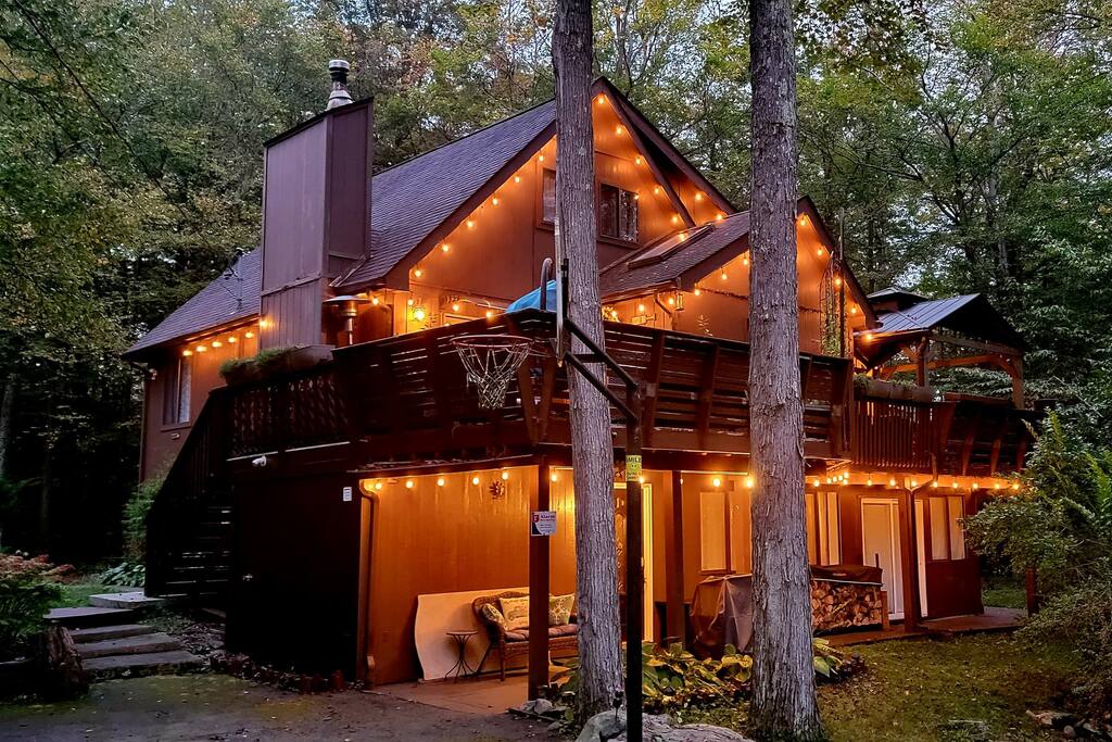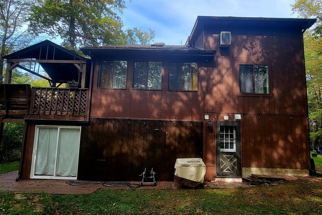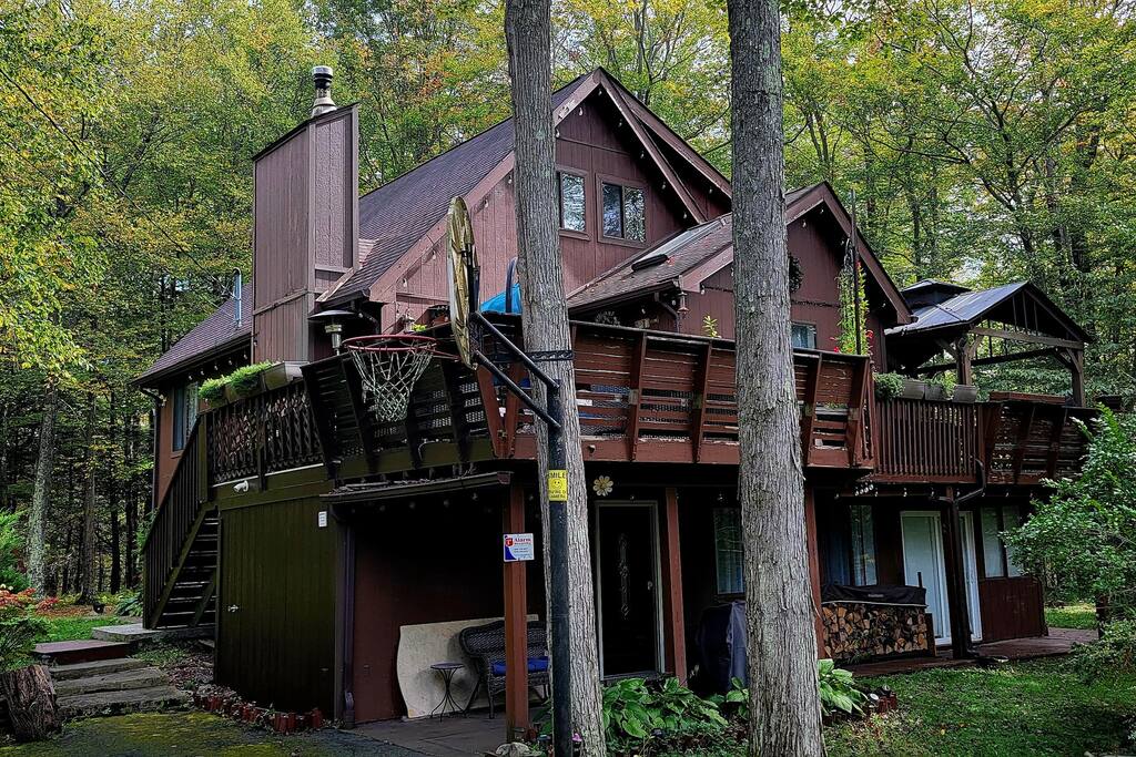 Spacious 4BR, 3BA Family-Owned Retreat in The Hideout – Lake Ariel, PA Privately tucked away, this 3-level home features two cozy living areas, a fully stocked kitchen, and a large wraparound deck with grill and outdoor dining. Surrounded by trees for peaceful privacy. Family-owned and personally used—this is no cookie-cutter Airbnb. Includes access to pools, lakes, golf, tennis & more.